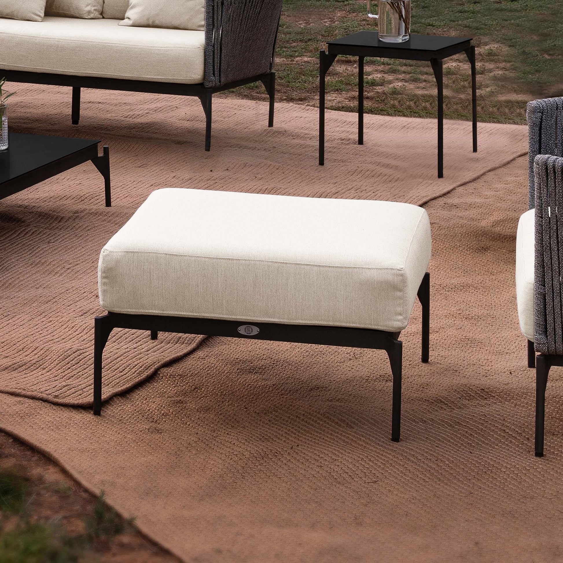 A captivating piece that effortlessly transforms any outdoor space into a stylish haven. The ottoman features a powder-coated aluminum frame. A comfortable cushion is included in 5453 Sunbrella Canvas or you can choose from other available Sunbrella options. Crafted for durability, the chair combines modern elegance with resistance against the elements. Create a personalized outdoor oasis with the Boston Outdoor Ottoman where style, comfort, and durability converge.