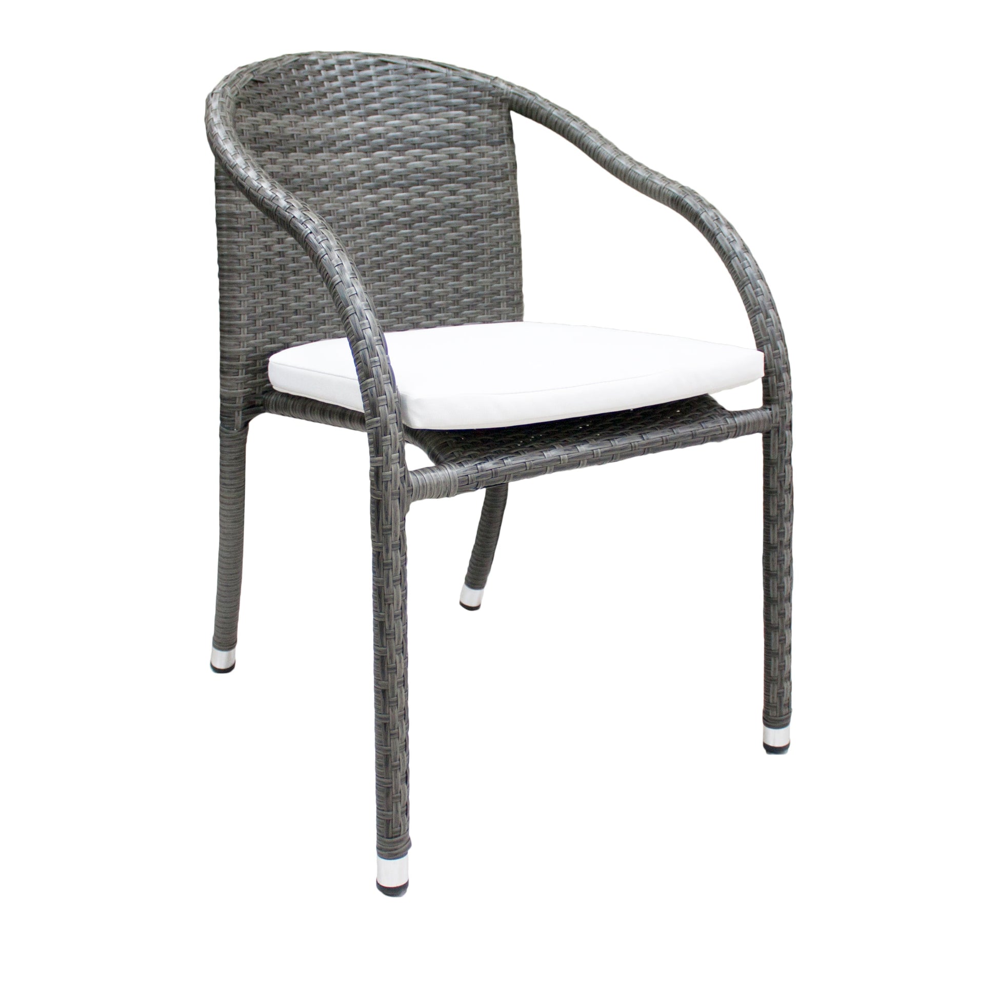 Upgrade your outdoor living space with the Spectrum 5-Piece Stackable Woven Armchair Dining Set with Cushions. Designed for both style and comfort, this set includes 4 stackable armchairs and a dining table with a tempered glass top, perfect for al fresco dining or entertaining. The gray wash finish of the woven aluminum frame gives a contemporary look to this set, and the included standard off-white cushions provide added comfort. Alternatively, you can choose from a variety of different Sunbrella color options to suit your preference. With its stackable design, this set is perfect for small outdoor spaces, and the durability of the materials ensures it will last for years to come.