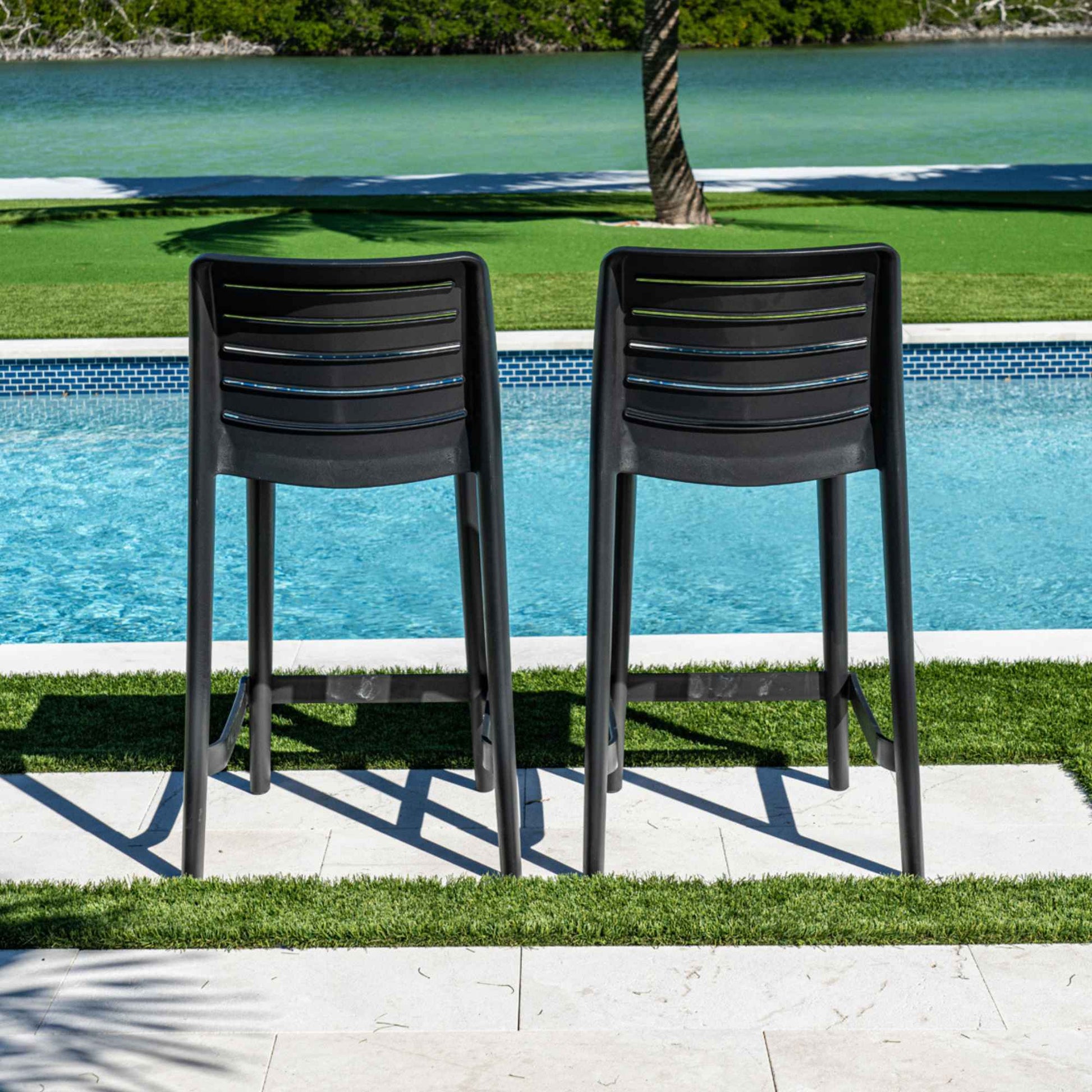 The Leva Set of 2 Barstools or Counterstools is designed for outdoor use, combining durability and style for any setting. Featuring a robust polypropylene frame and a stackable design, these stools are both practical and space-saving. Available in Black and Brown, they add a modern touch to patios, poolside bars, or outdoor dining areas. With commercial-grade quality, these stools are built to endure heavy use while providing lasting comfort. Perfect for residential or commercial spaces, the Leva stools are a versatile and reliable seating solution.