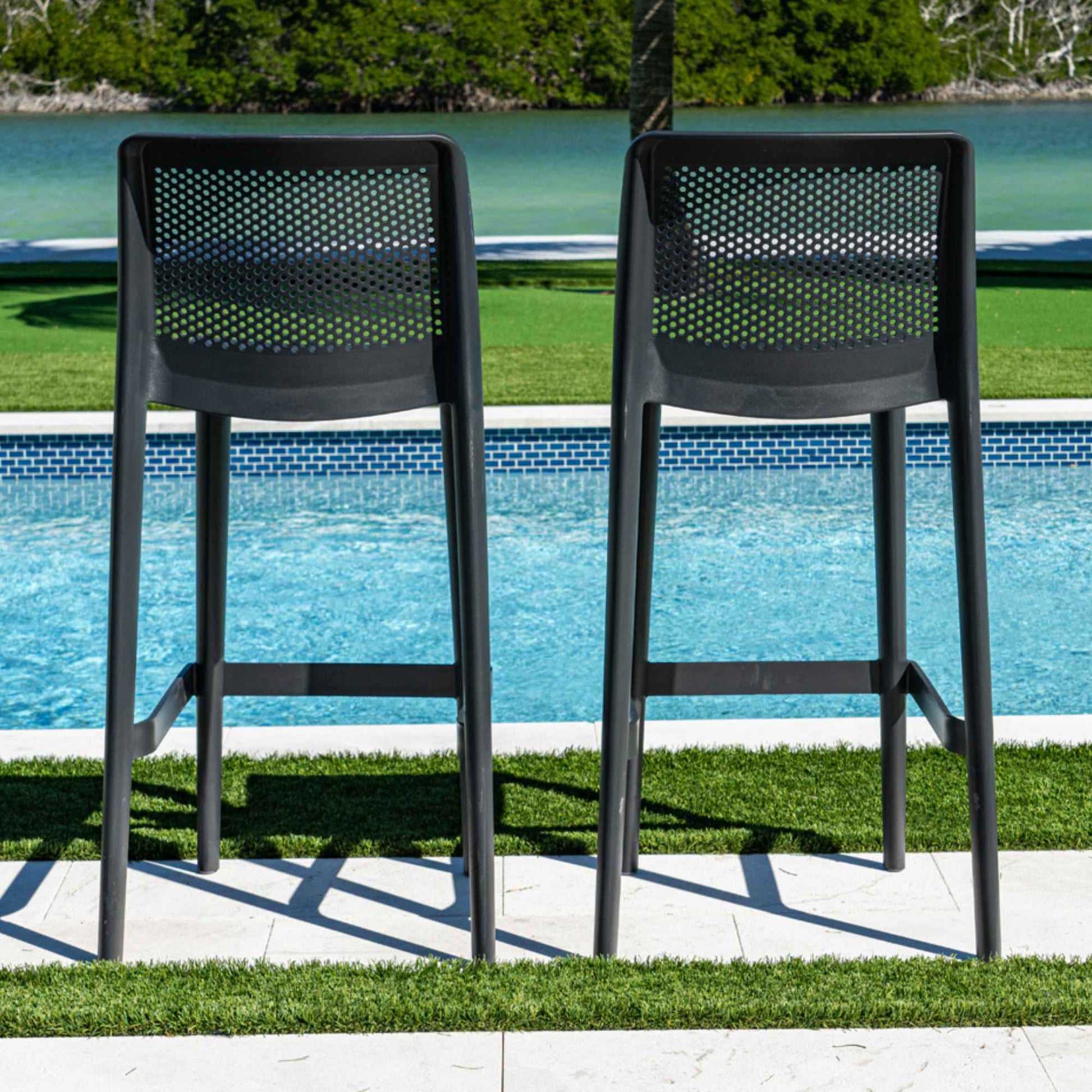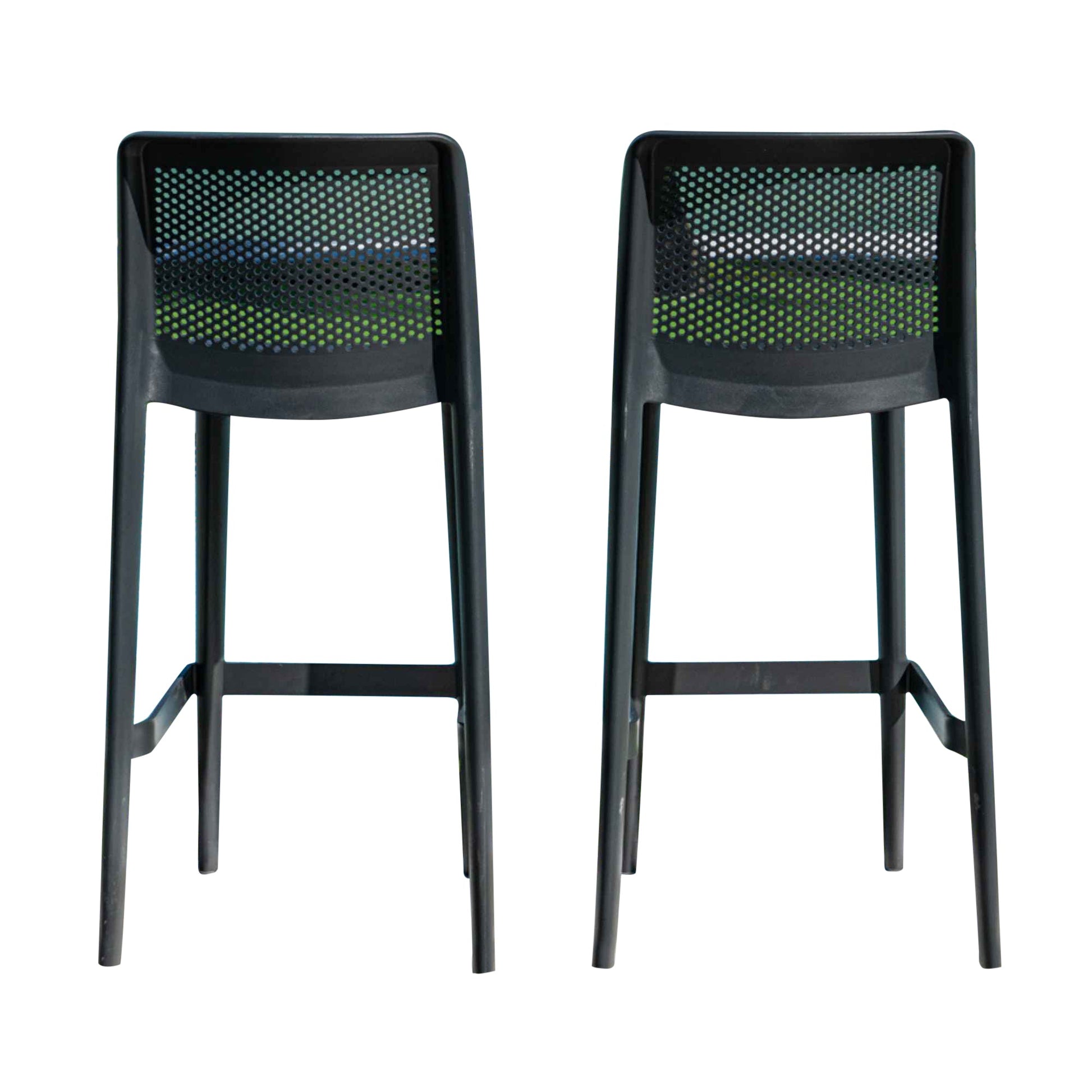 The Lisa Set of 2 Barstools combines modern style and durability, making it the perfect addition to any outdoor space. Available in Black, Brown, or Green, these barstools are constructed with a sturdy polypropylene frame, ensuring long-lasting performance in outdoor environments. Designed exclusively in barstool height, they feature a perforated backrest for added comfort and a sleek, contemporary look. Ideal for patios, poolside bars, or outdoor dining areas, the Lisa Barstools provide versatile and stylish seating to elevate your outdoor setup.